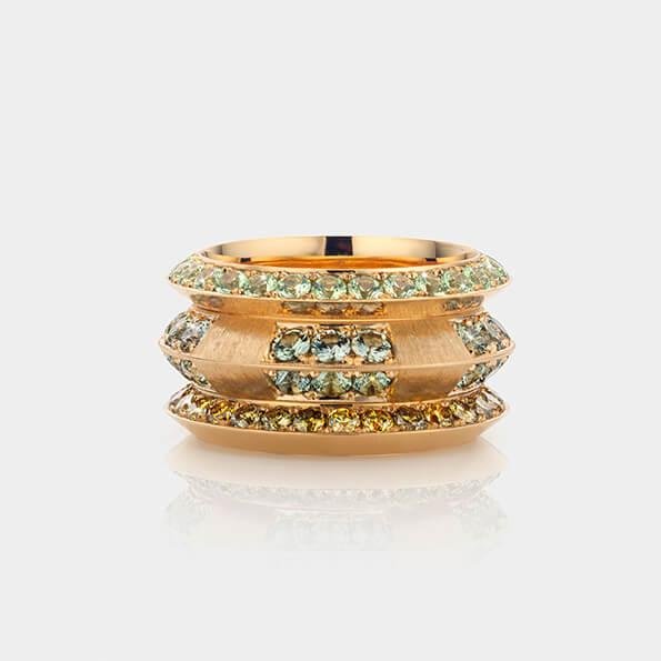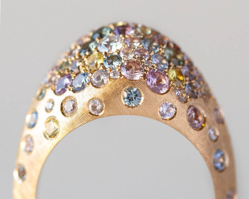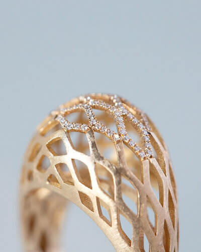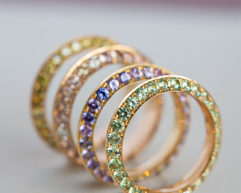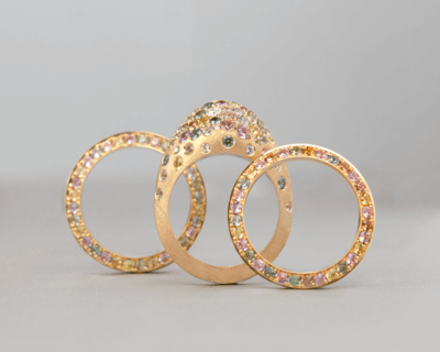 Hoewel ze van oorsprong niet uit het vak komt, maakt Veronique Ribbink juwelen van buitengewone klasse: ringen, armbanden en oorsieraden van 14-, 18-en zelfs 22-karaats goud, loeistrak gezet met diamanten, saffieren, spinellen en granaten, waarvan de hele supply chain gecontroleerd is. Niet alleen zij wil namelijk blij worden van deze sieraden, ze wil dat dat geldt van de mijnen tot en met de draagster, waar ter wereld deze zich ook bevinden. Deze aandacht voor andermans geluk is tekenend voor Véronique, die naast haar atelier creatieve workshops aanbiedt voor jongeren die zijn vastgelopen in de huidige maatschappij. Met speciale aandacht voor jongeren met anorexia, de ziekte waaraan ze zelf haar dochter Eefje verloor.