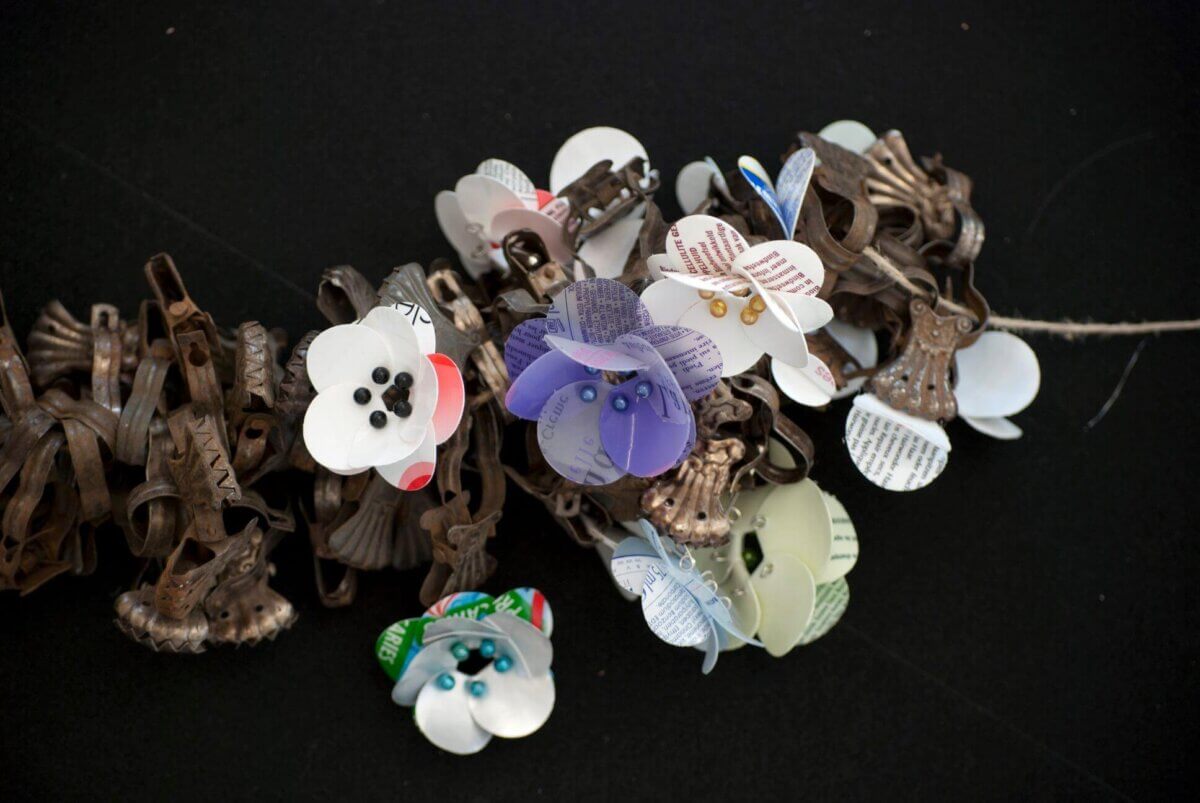 Loet werkt het liefst met ‘materiaal dat overblijft’, zoals doppen, lege flessen en tubes, lege stiften, deksels, banners, elpees en marmoleum. Voor haar sieraden deed Loet een uitvoerige studie naar het materiaal plastic. Haar werk is verrassend, grappig, kleurrijk en eigenwijs. In haar sieraden verwerkt zij allerlei soorten plastics zoals PE, PP (shampooflessen, tubes, stiften, PET flessen etc) die ze combineer met zilver “Plastic is een bijzonder en veelzijdig materiaal dat blijft inspireren.